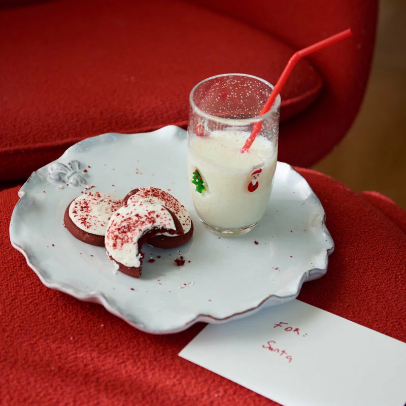 This wonderful new addition to our bubble glass line is great for Santa’s milk or any beverage of your choice. Mouth-blown bubble glass with applied Christmas decorations.