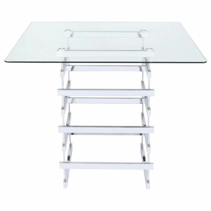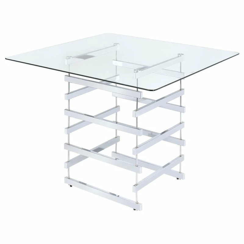 The Nadie counter height table is composite of bold and light weight architectural lines. The chrome finished legs and stretchers create the implied sturdy box base, creating different patterns from all views. Contrasting with the 42″ square glass top, this dining table will definitely turn your dining area to an incredible modern living space.