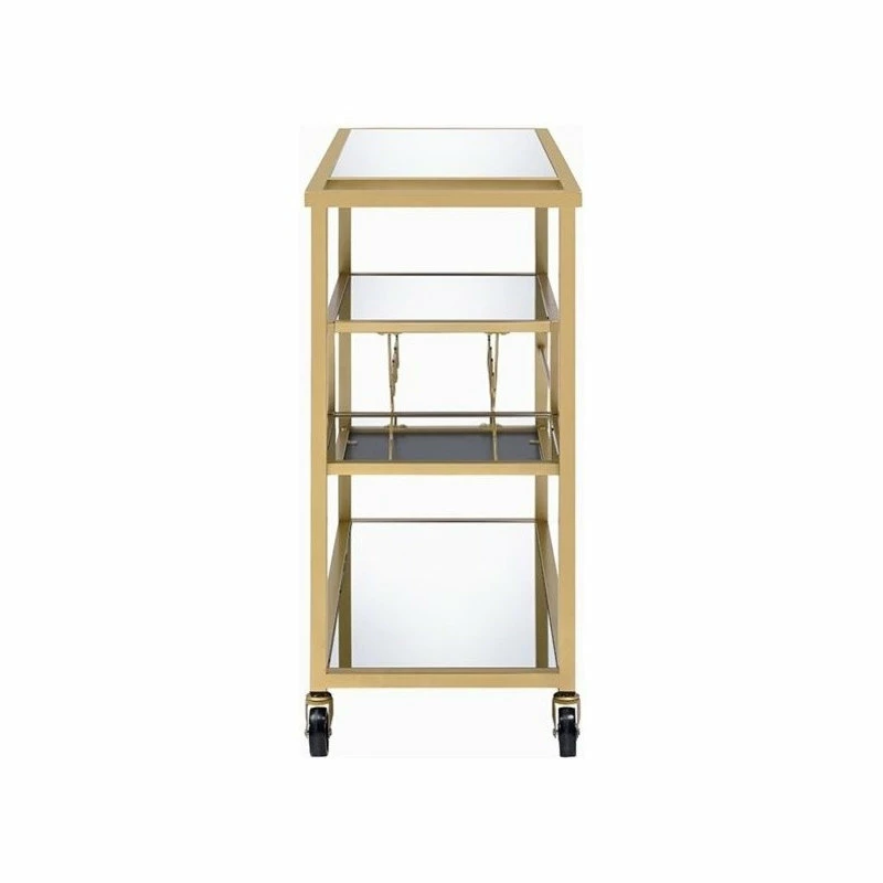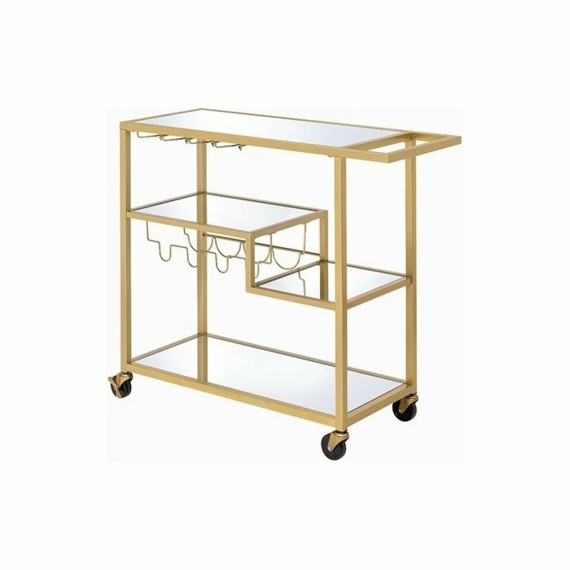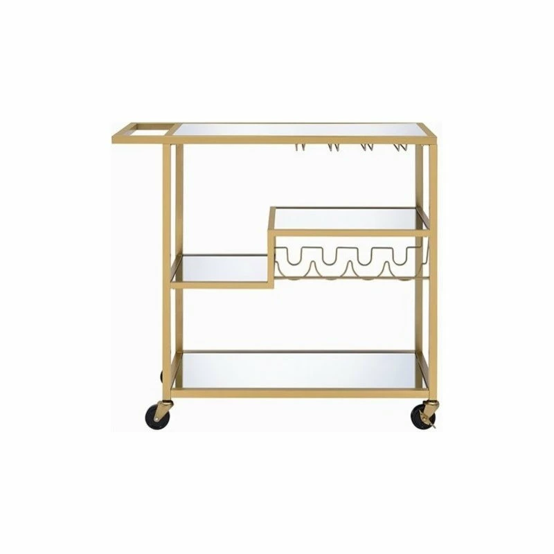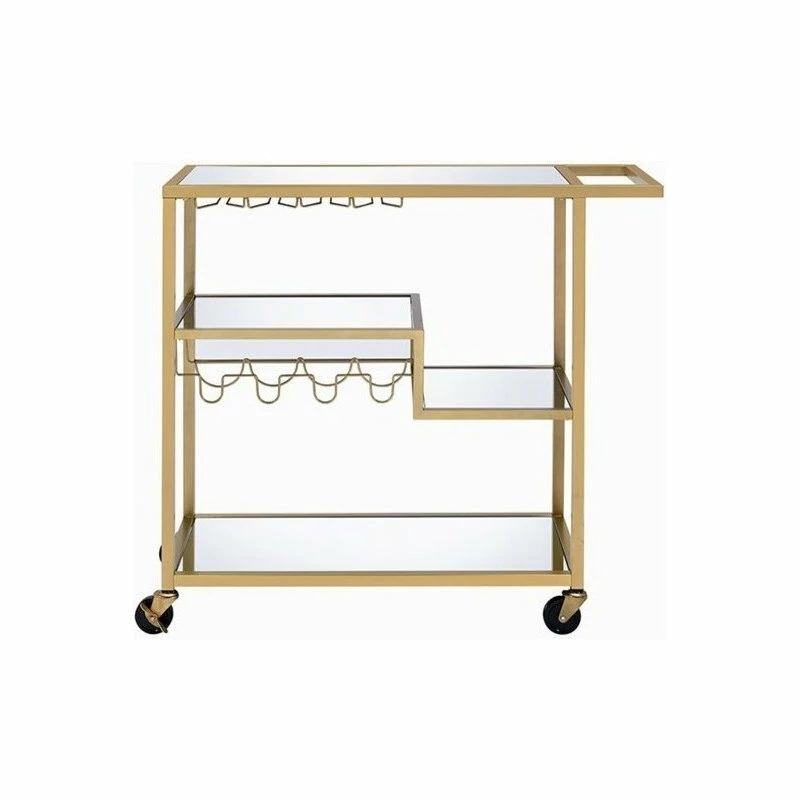 Mirror furniture is the perfect way to infuse a little glam into any look and add the illusion of extra space into rooms. With its shimmering tiers, this Adamsen serving cart will catch light for a stylish sparkle to complement neutral spaces. The clean-lined design is crafted from gold coating metal tube. Alone with its top and bottom shelf, two center shelves are with different heights to add convenience for you to display various d?cor. For added functionality, this cart also comes equipped with wine rack and glass rack for you to stock up your favorite bottle.