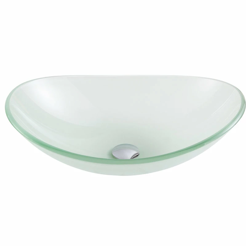 The ANZZI Forza Series sink is a traditionally crafted oval vessel sink adorned in a Lustrous Frosted Finish. Each ANZZI vessel sink is formed using RHINO ALLOY certified high tempered Deco-Glass material. The result is a perfectly shaped dynamically captivating vessel centerpiece for any bathroom counter. Additional Product Information: Collection: Forza Series Item Finish: Lustrous Frosted Finish Product Height (inches): 6.375 Product Length (inches): 21 Product Width (inches): 14.25 Weight (lbs.): 13.6 Feature 1: Lustrous Frosted Finish Feature 2: RHINO ALLOY certified Tempered Deco-Glass construction Feature 3: Scratch-tough and stain-resistant non-porous surface Feature 4: Easy-to-clean low maintenance Feature 5: Top Mount installation Feature 6: Dimensions: 21 in. L x 14.25 in. W x 6.375 in. H Feature 7: Deco-Glass thickness 1.75 in. Feature 8: Single 1.75 in. standard drain opening Feature 9: Limited Lifetime Warranty Specs: Specs & Dimensions Manual / Instructions: Manual & Installation Care Guide: Care Guide Warranty: Warranty