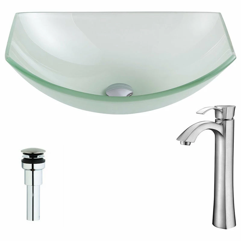 The ANZZI Pendant Series sink is a traditionally crafted oval vessel sink adorned in a Lustrous Frosted Finish. Coupled with the ANZZI Harmony Vessel Sink Faucet, this combination provides pure elegance in any bathroom. Each ANZZI vessel sink and faucet is formed using RHINO ALLOY certified materials for strength and quality along with high tempered Deco-Glass. The result is a perfectly shaped dynamically captivating vessel and faucet centerpiece for any bathroom counter.