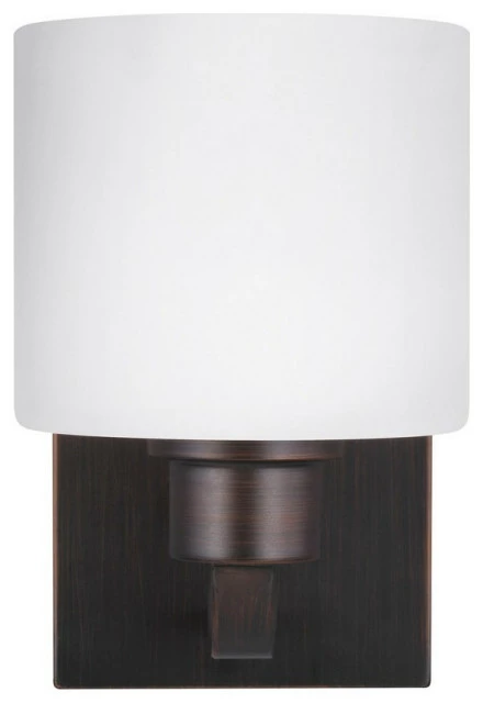 1 Light LED Steel Wall Sconce with Etched/White Glass-8.25 Inches H by 5.5 Inches W Bronze Incandescent . The Bailey Street Home Collection Broomhill Glebe one light wall sconce in chrome is an ENERGY STAR qualified lighting fixture that uses LED bulbs to save you both time and money. Behind every seemingly simple design lies unerring attention to restraint and obsessive attention to the tiniest details. The Broomhill Glebe collection by Bailey Street Home Collection draws on the modernist traditions of “less is more”. Essential functional elements dictate the aesthetics and clean lines prevail. Layers of intricately finished hand-brushed steel progress vertically to the soft glow of light diffused through finely etched glass diffusors. Broomhill Glebe offers a “whole home” lighting solution; offering lighting in every imaginable category from the auspicious 15 light 3-tier chandelier to the concise mini-pendant and one-light sconces. The collection is available in hand brushed Bronze for a warm tactile almost Craftsman design style or a brushed nickel to emphasize the more architectural elements of your interior.