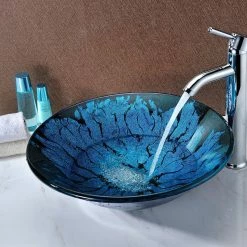 SpaWorld Corp ANZZI Tereali Glass Vessel Sink, Blue Ice