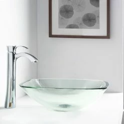 Renovators Supply Manufacturing 11 5/8″ Tempered Glass Vessel Sink With Drain And Clear Mini Bowl Sink