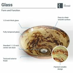 Rene R5-5029-R9-7006 16-1/2″ Glass Vessel Bathroom Sink – Foil Undertone /