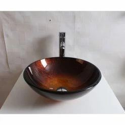 Arsumo Glass Round Vessel Bathroom Sink With Faucet