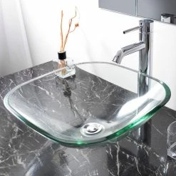 Aquaterior 2 Pcs Square Tempered Glass Above Counter Vessel Bowl Vanity Sink