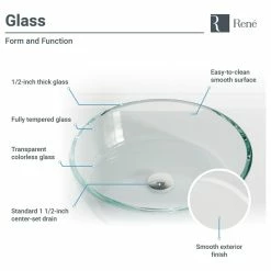 Rene R5-5029-R9-7006 16-1/2″ Glass Vessel Bathroom Sink – Foil Undertone /