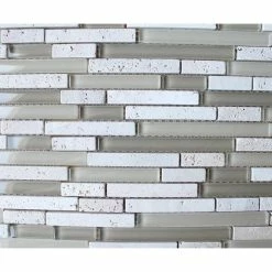 Rocky Point Tile Bliss Creme Brulee Stone And Glass Linear Mosaic Tile, 12″x12″ Sheet