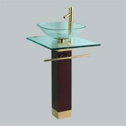 Renovators Supply Manufacturing Bohemia Glass Pedestal Sink Gold PVD Vanity Combo Faucet Drain Towel Bar