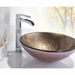 SpaWorld Corp ANZZI Tara Deco-Glass Vessel Sink, Platinum Storm