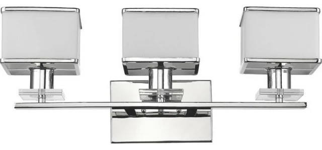 This contemporary 3-light bath/vanity light features a chrome finish that will complement many contemporary and modern decors. The opal glass shades add interest, soften the light and complete the look of this attractive design.