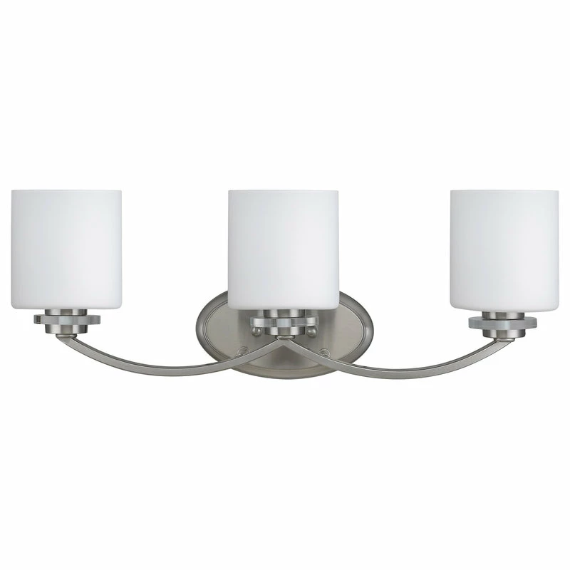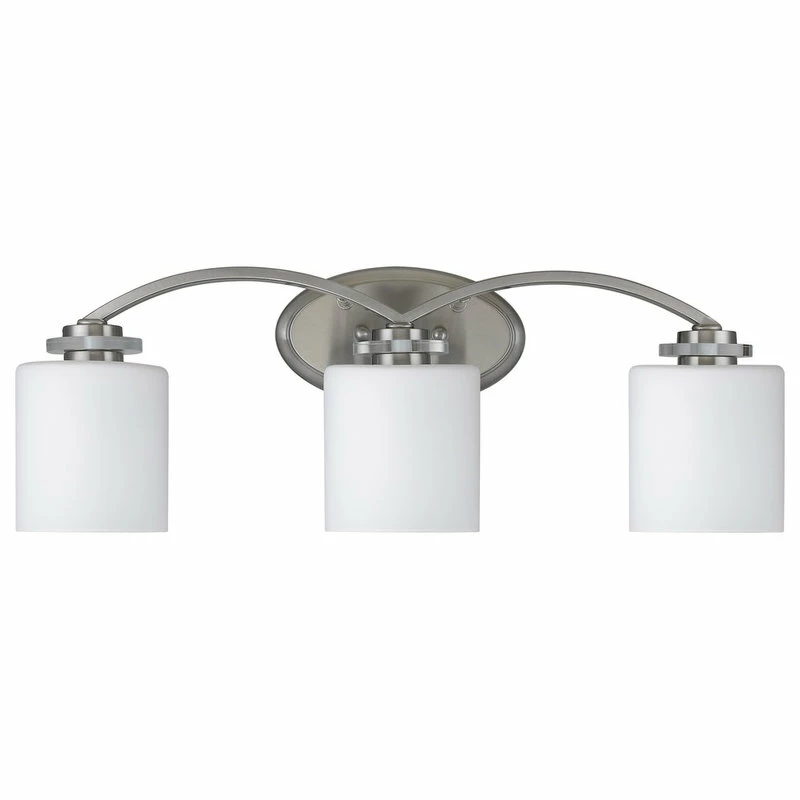 The PRUDENCE collection offers a bath vanity light fixture that is simple yet elegant. Comes in three white etched glass globes with a contemporary modern brushed nickel finish. A beautiful way to illuminate your bath and vanity space.