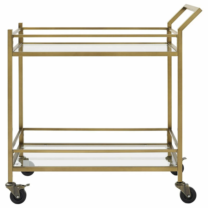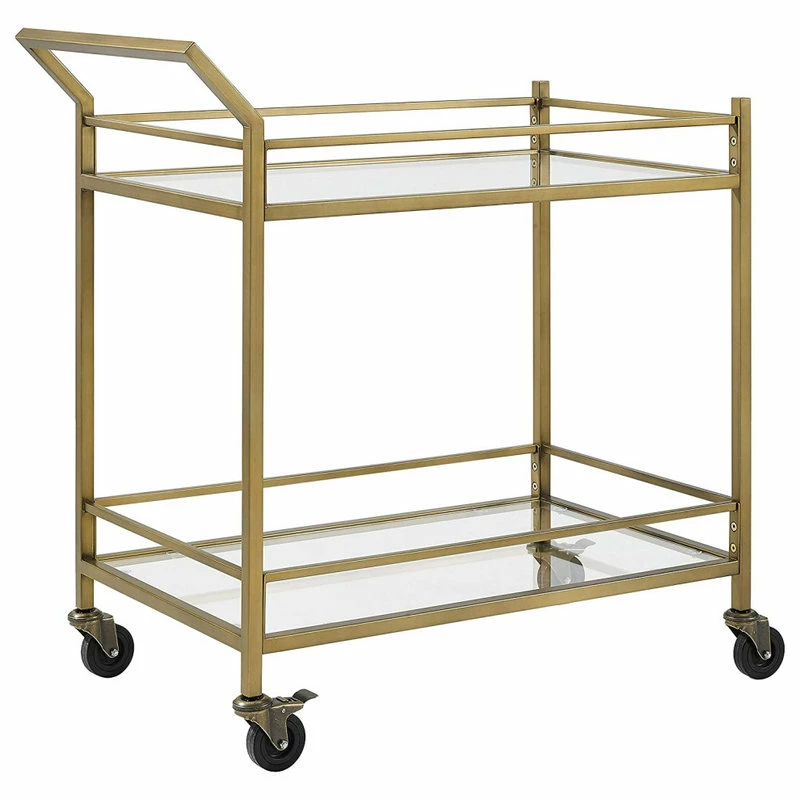 Be the first to review “Decor Love Mid Century Bar Cart, Antique Gold Metal Frame With Glass Top And Lower Shelf” Cancel reply