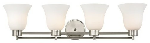 Modern satin nickel 4-light bathroom light.