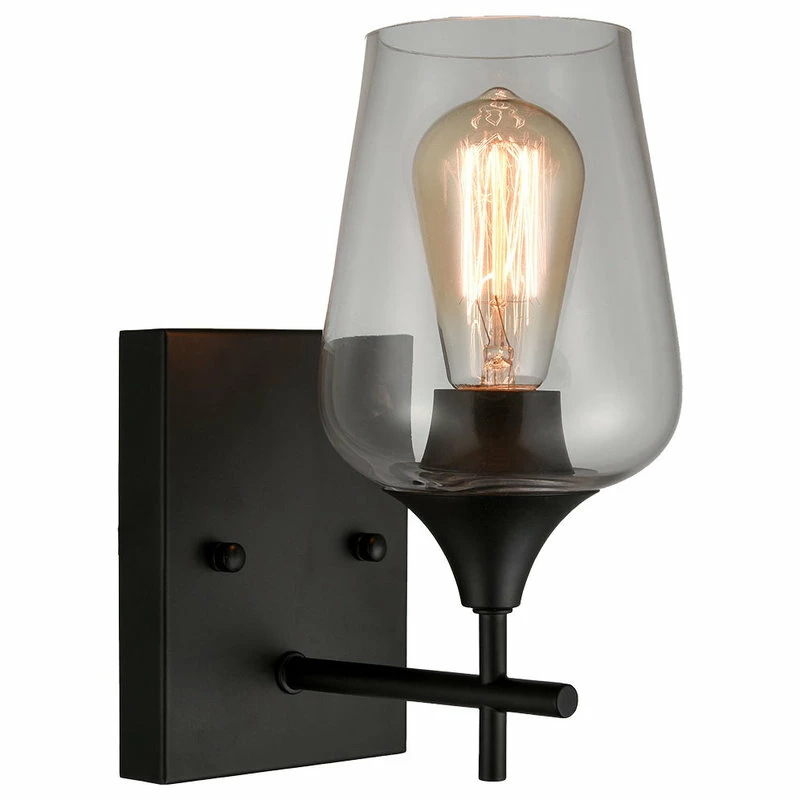 - Industrial Matte Black Finish Bathroom Vanity Lights Glass Sconces