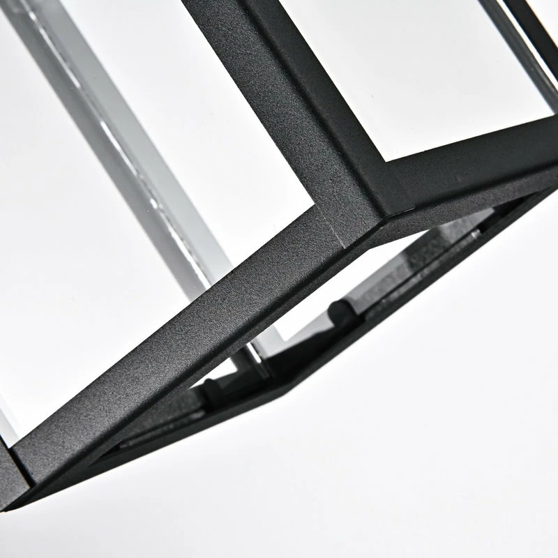 - Textured black finish with clear glass