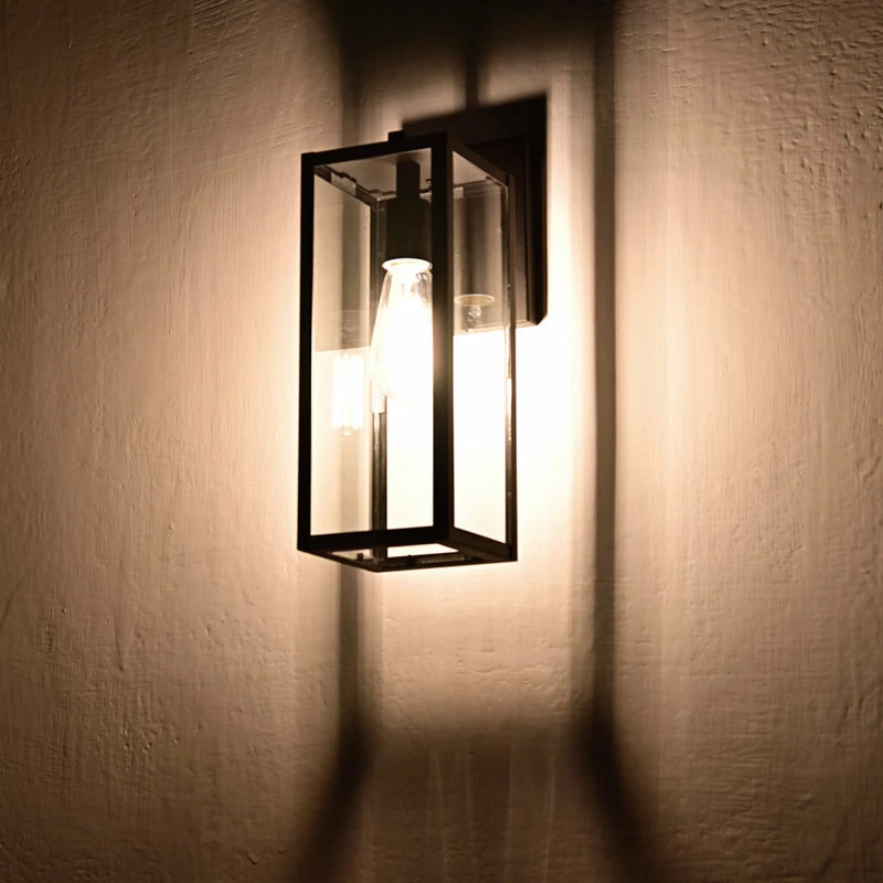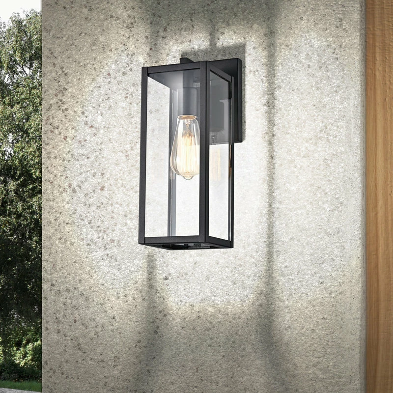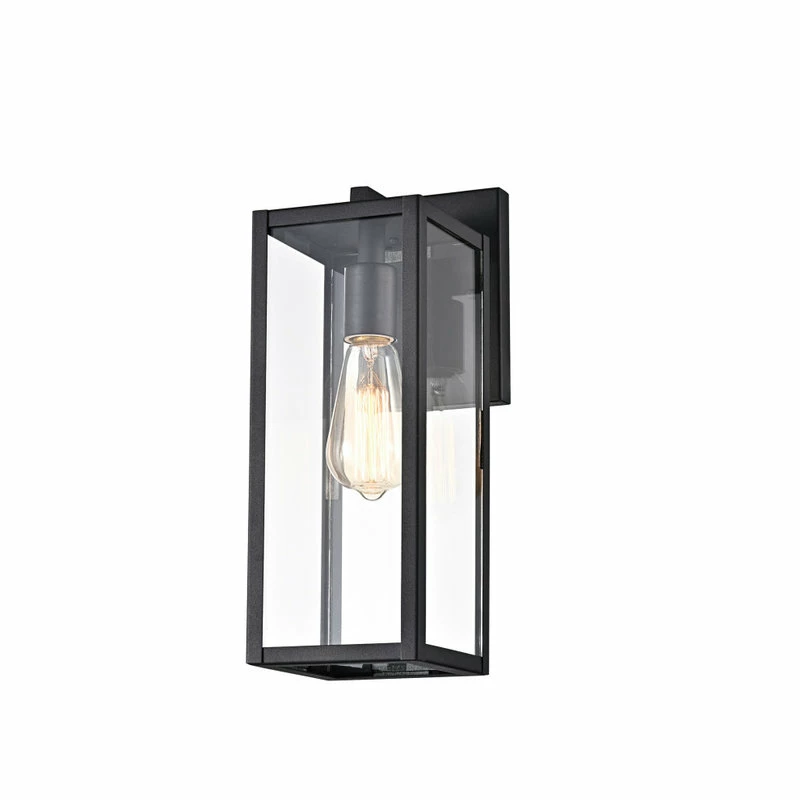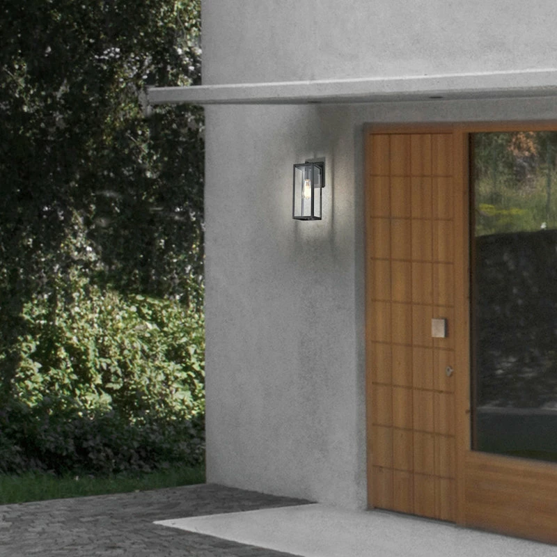 Create a welcoming glow in front of your home with our classic outdoor wall sconce. This beautiful wall lantern combines black metal with clear glass to create a warm, friendly first impression. Perfect for porches, front door, and patios. The clean box silhouette creates an eye-catching design element. The open bottom allows you to easily change bulbs while the black finish fits into any design plan.