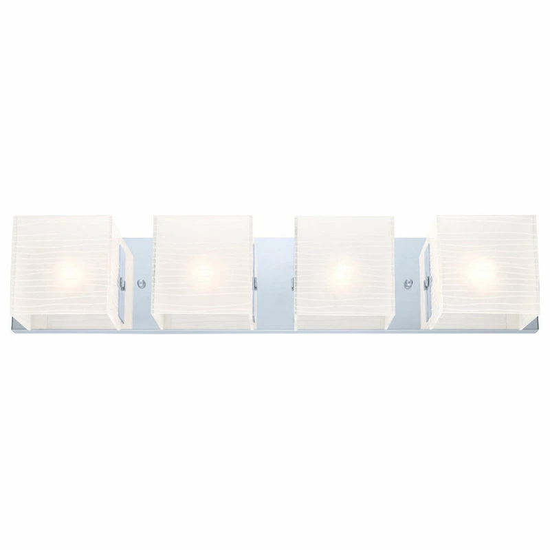 The� Alea 1 Four Light Vanity Light by Eglo is perfect for any bathroom. The Boxed lighting adds a touch of modern style with a striped, satinated glass cube shade and polished chrome frame.