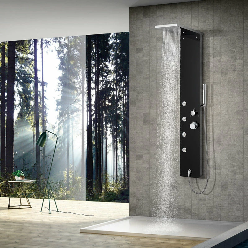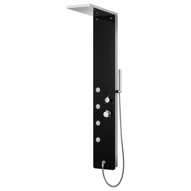 The Eviva Velino Black Tempered Glass Thermostatic Shower Massage Panel can really take your morning cleaning routine to the next level! This model comes equipped with a large overhead monsoon style shower head, a handheld shower wand for mobility and hard to reach places and 4 adjustable body massage jets. The black tempered glass finish adds a modern touch to any bathroom sanctuary!