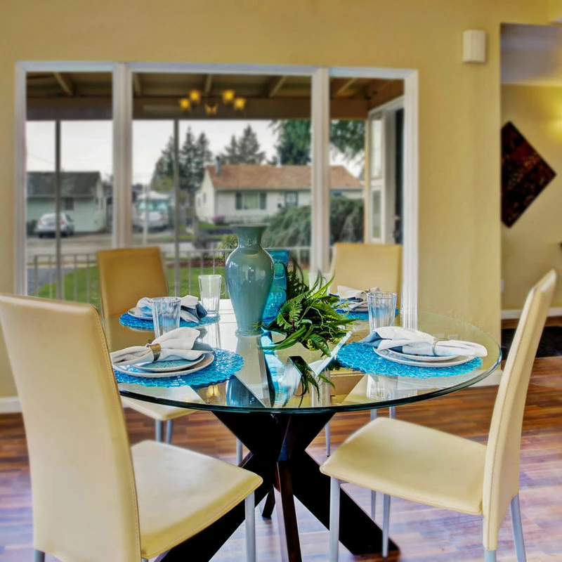 ½ Thick: Choose 1/2 thick strong glasses for the residential & commercial use tabletops, and manage your accessories in a better scene. Glass tabletops in 1/2 thickness are the finest product where the table needs to support the massive weight without any support.