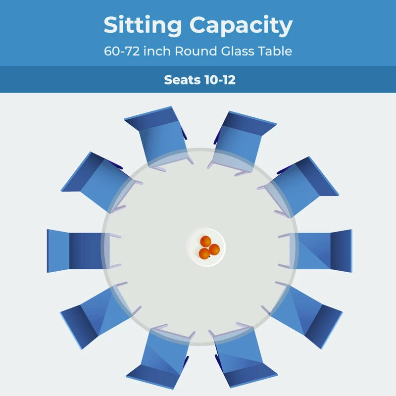 This 60” round clear glass tabletop can be perfect if you are searching for a flat surface that may not stain. The tabletop comes with Flat polished Edge with 1/2” thickness and available in different sizes from 12”es to 60”es. 60. Flat Polished Tempered 1/2 thick round clear glass tabletop is best to use for Office tables, Lobby tables, business meetings tables, Dining tables, Kitchen Tables, desk, patio table or a coffee table.