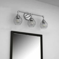 Vanity Art LLC Vanity Light, Satin Nickel With Clear Seedy Glass, Satin Nickel, 3 Light