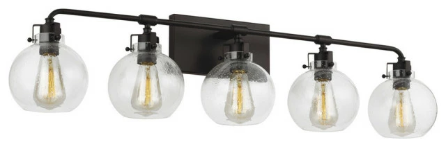 The Feiss Clara five light vanity fixture in oil rubbed bronze provides abundant light for your bath vanity, while adding a layer of today’s style to your interior design.
