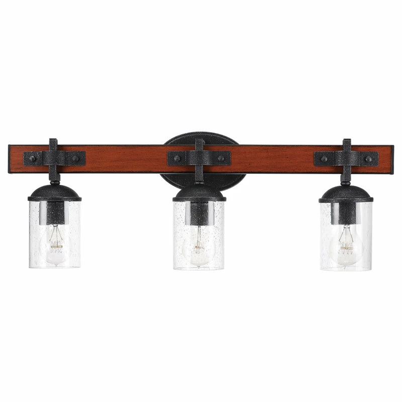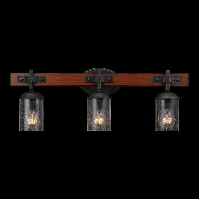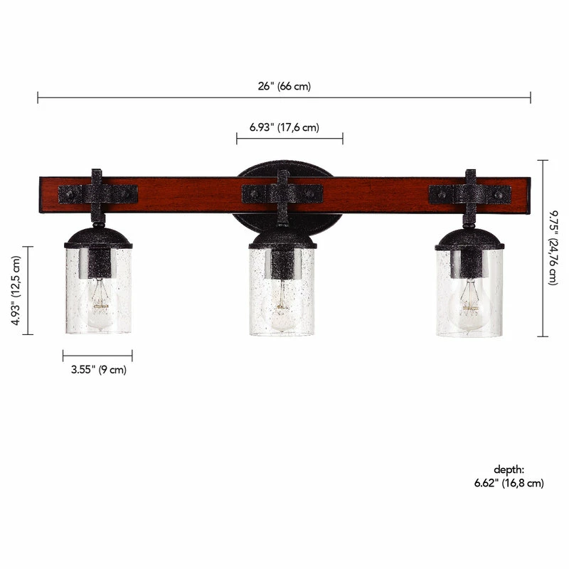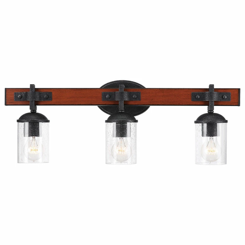 - RUSTIC INDUSTRIAL: with a blend of dark faux wood and galvanized metal accents, the Kingston Vanity Light Fixture brings forth a rustic industrial design worthy of any space