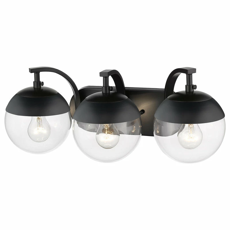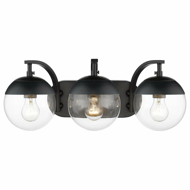 Be the first to review “Golden Lighting Dixon 3-Light Bath Vanity, Black, Clear Glass And Black Cap” Cancel reply