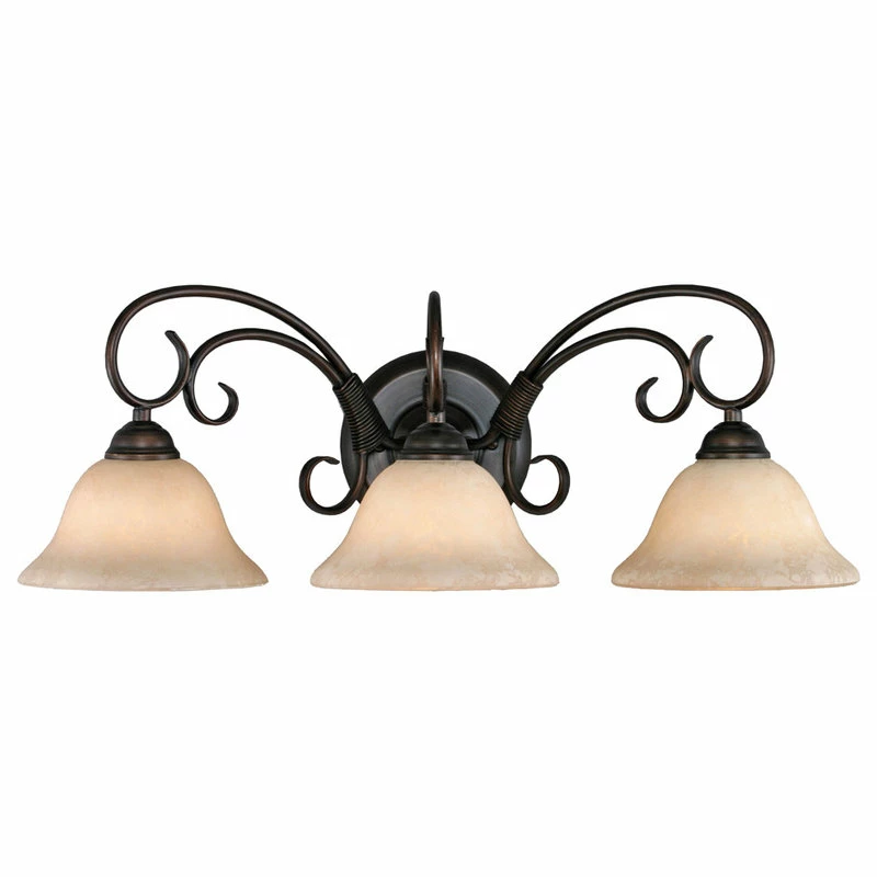 - Golden Lighting’s Homestead 3 Light Bath Vanity in Rubbed Bronze offers cozy and inviting transitional style
