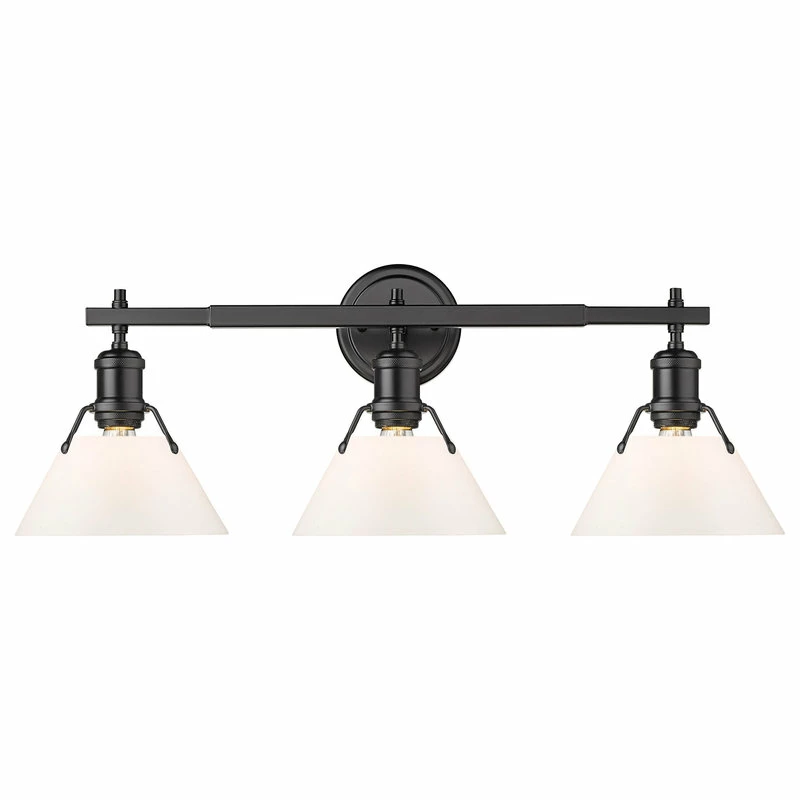 Be the first to review “Golden Lighting Orwell Bath Vanity, 3-Light, Matte Black, Opal Glass Shade, 27.25″W” Cancel reply