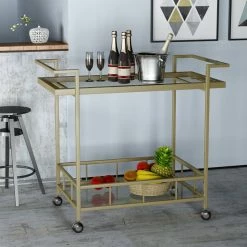 GDFStudio GDF Studio Easter Indoor Industrial Iron And Glass Bar Cart, Gold