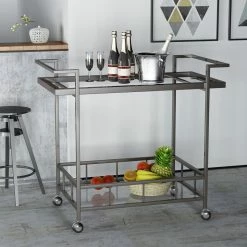 Henn&Hart 38″ Satin Nickel Metal/Glass Bar Cart