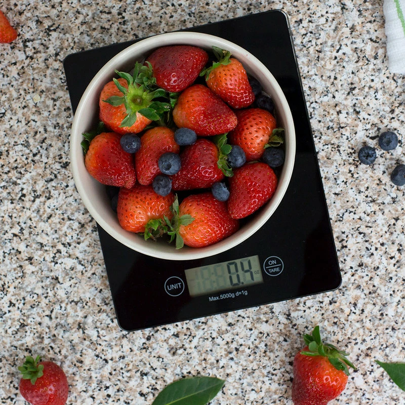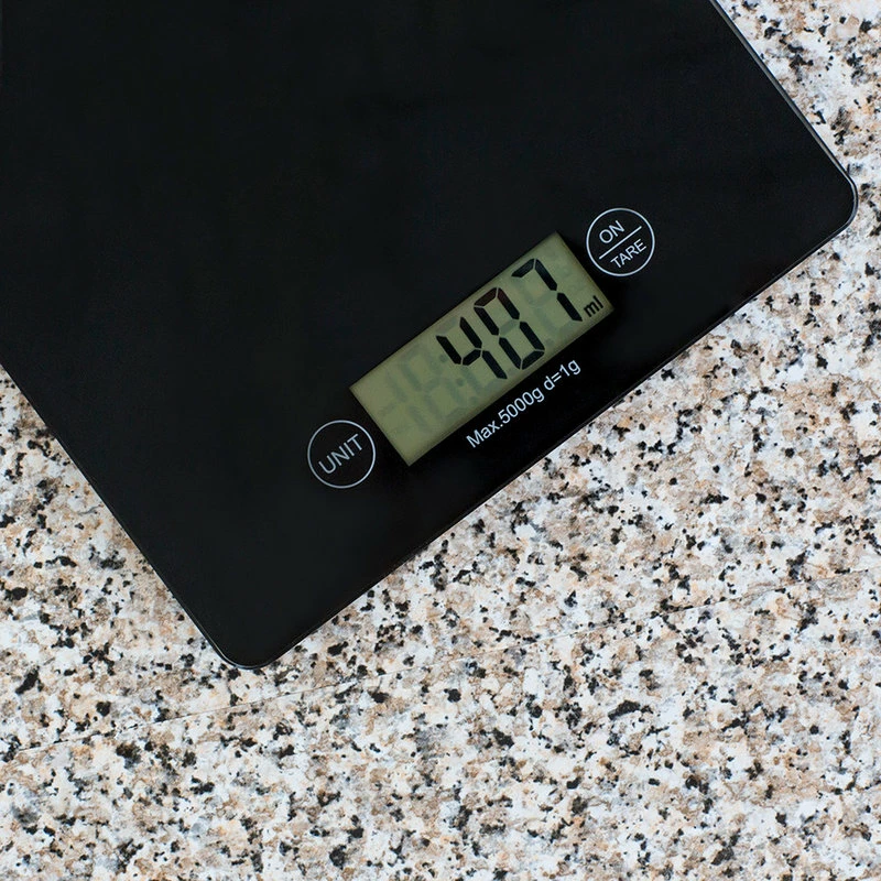 With its sleek and clean design, the scale makes the perfect accent to any kitchen decor. It’s the perfect for both home and commercial use. Use it in the kitchen to prep your meals for the week or measure out ingredients for cooking. Or use it to weigh mail. The platform features a smooth surface making it a cinch to clean and maintain. No more worrying about clutter! It’s ultra slim lets you tuck it away in a drawer or cupboard, freeing up more from other kitchen gadgets and essentials. With a variety of weighing functions, you can easily choose measurements units in pounds and ounces. It’s built with an easy tare function so you weigh multiple ingredients in a single recipe. The scale is battery operated making the scale easy use wherever you need it.A perfect aid for portioning food for healthy eating or measuring ingredients for precise cookingHigh precision sensors to give you the most accurate results. Measures in pounds, ounces, and grams to take the guesswork out of converting measurementsMade of sleek, tempered glass. Measures 8.07″ x 6.5″ x .65″