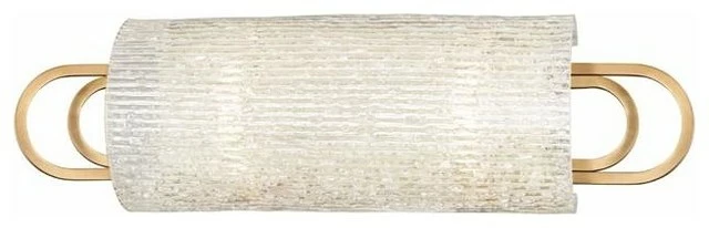 The handmade glass that artfully distorts the light in our Buckley family is unique. Clean, ribbed glass faces inward from the ovalesque piece. Broken chips of glass have been fused onto the back, causing a refractory effect. A double band of thick square metal mounts the fixture.