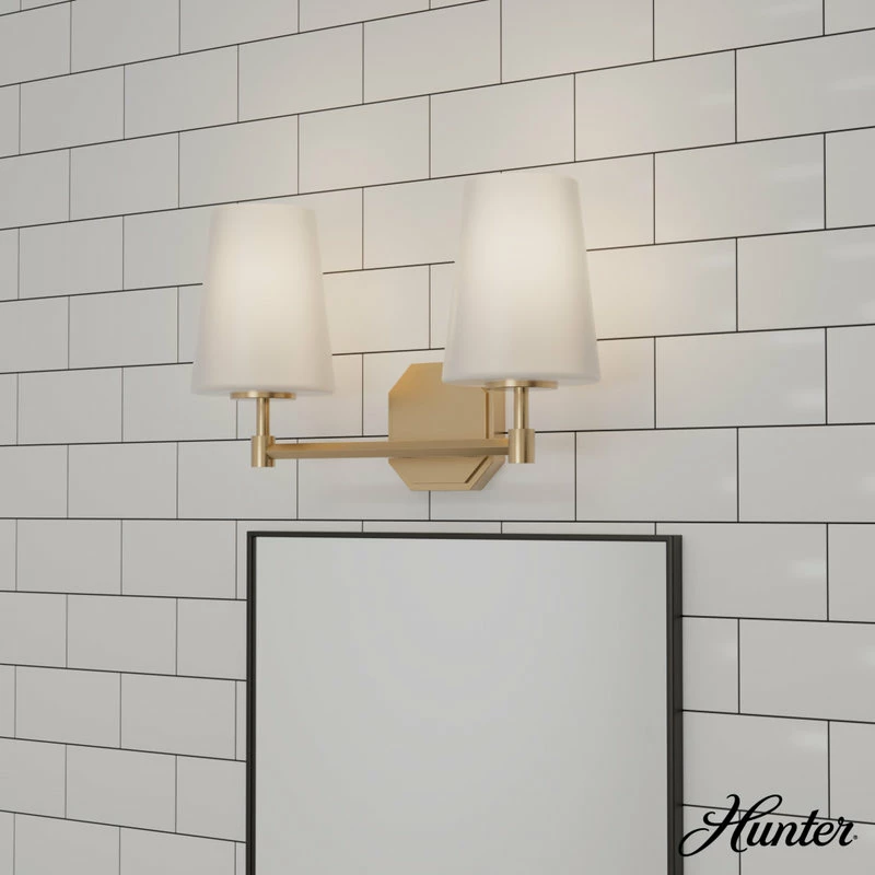 Create a glamorous mood every time you enter your powder room with a Nolita Vanity. Metal lights crowned with glass shades create an ambiance of sophistication that reflects your style. Add other lights from the Nolita collection for a more cohesive look throughout.