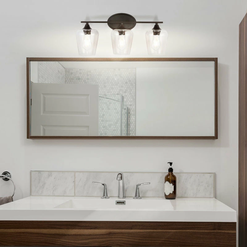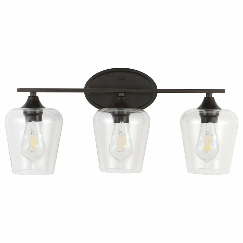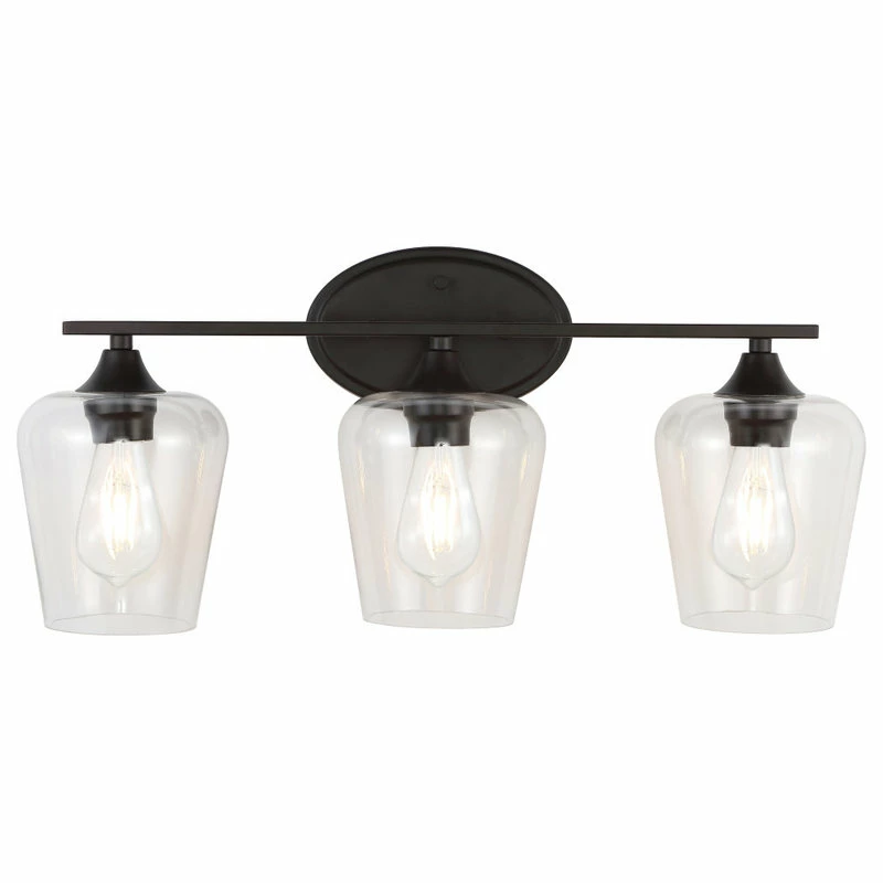 Elevate your urban apartment, cottage or farmhouse with our versatile take on a classic wall light. The included LED bulb casts a warm glow, providing plenty of light. The clear glass bell shade and oil rubbed bronze finish add elegant vintage style to your bath vanity, or above a kitchen sink.