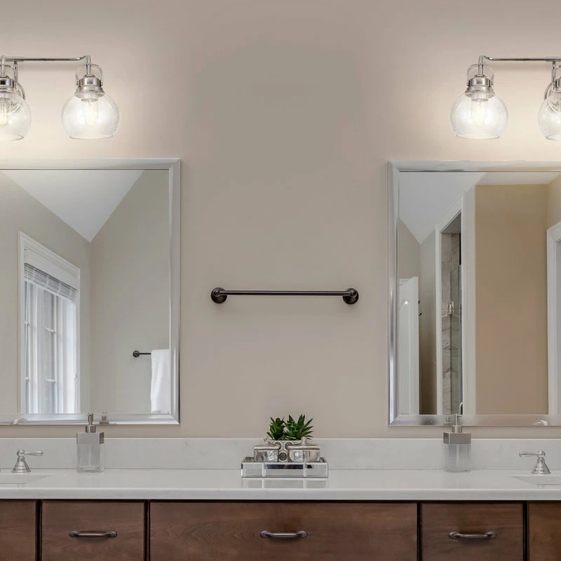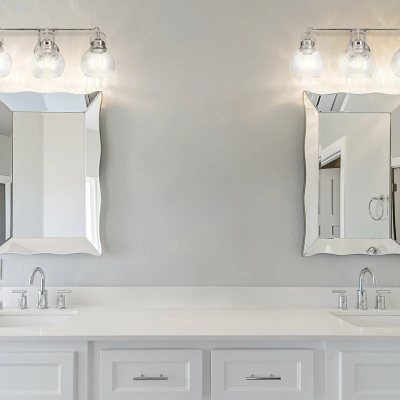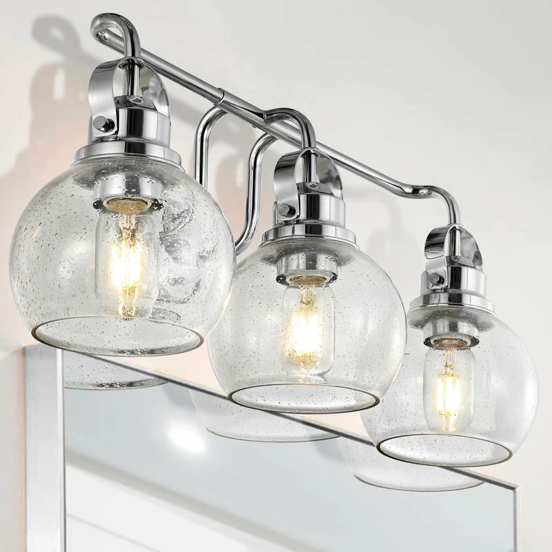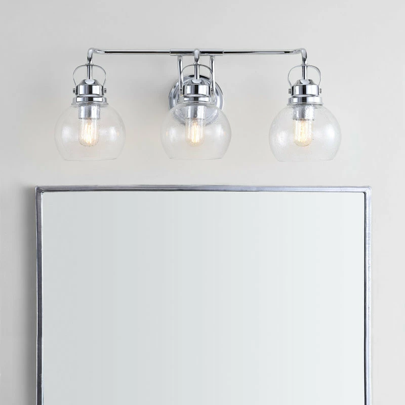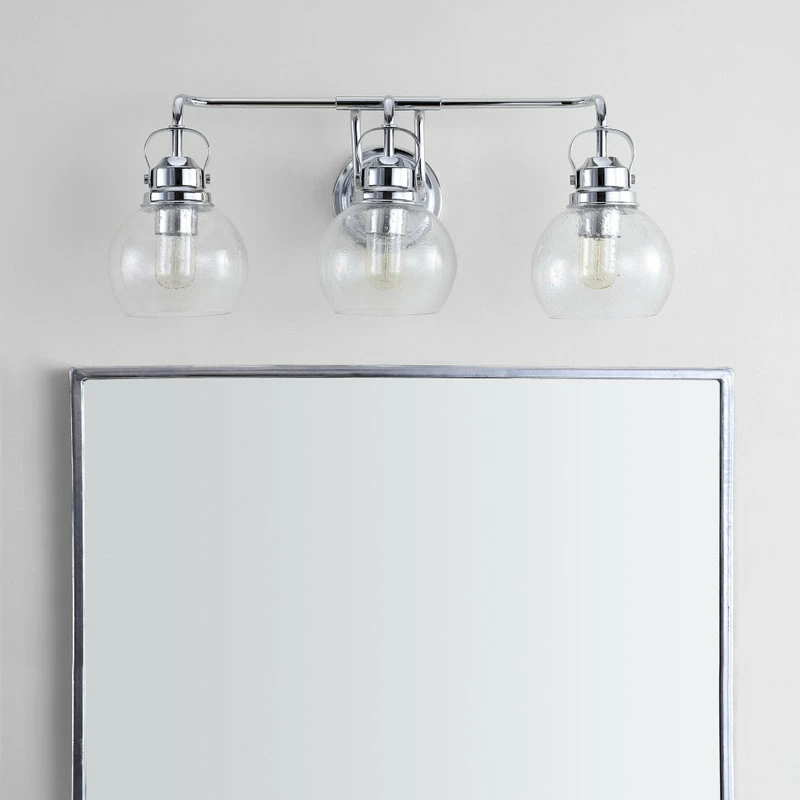 Much like the lanterns hung on New England shores to signal sailors home on summer nights, this globe sconce design adds a welcoming touch to a bathroom or hallway space. In chrome and glass, the materials are built to withstand humidity and frequent use, while the design is equally functional with LED compatible wiring. In clear bubbled glass, you’ll get a strong glow for your vanity or bathroom space.