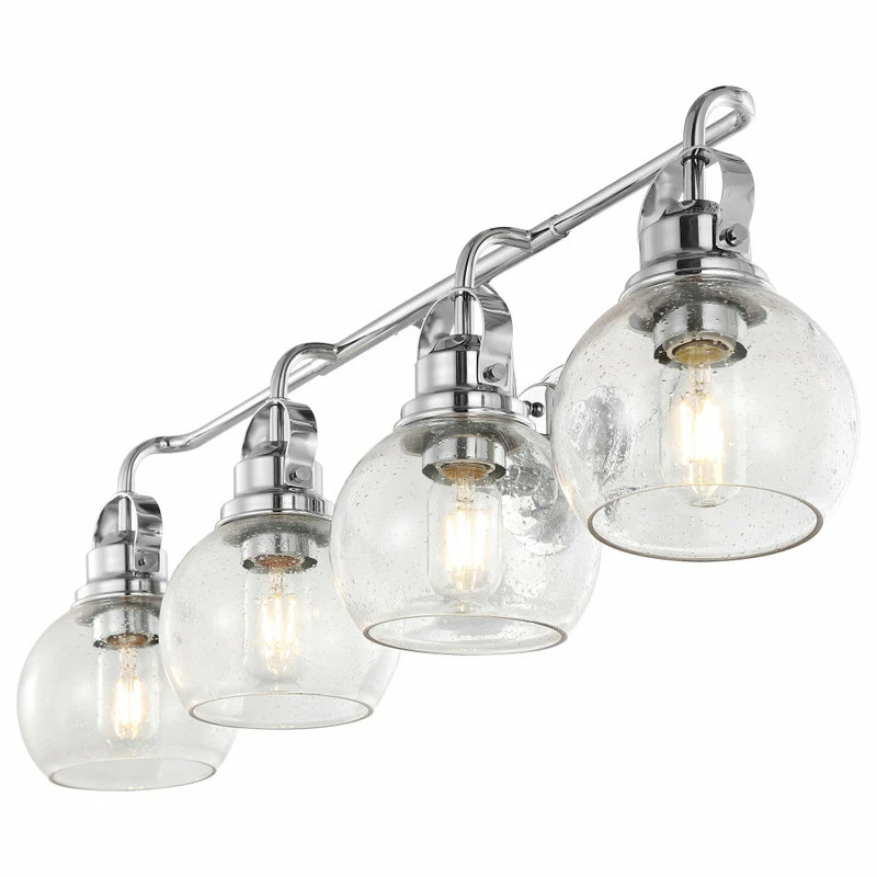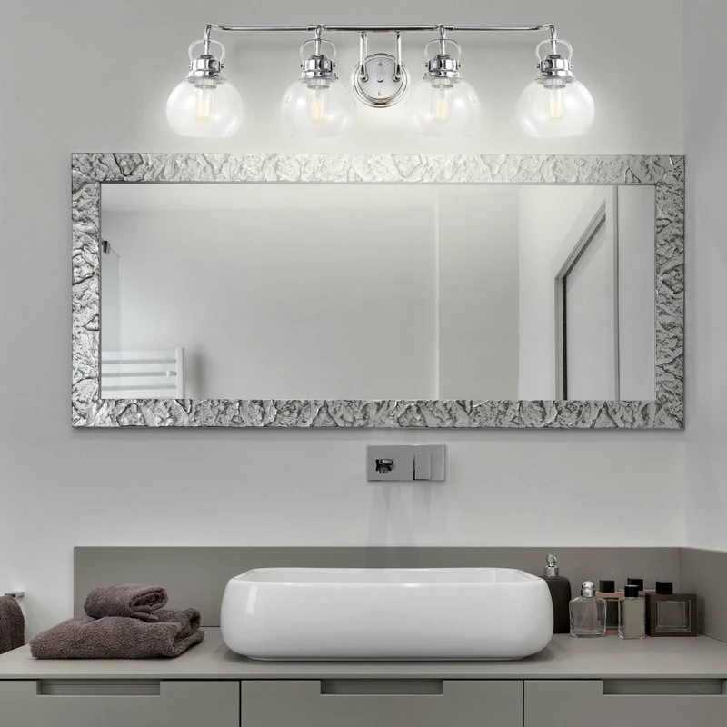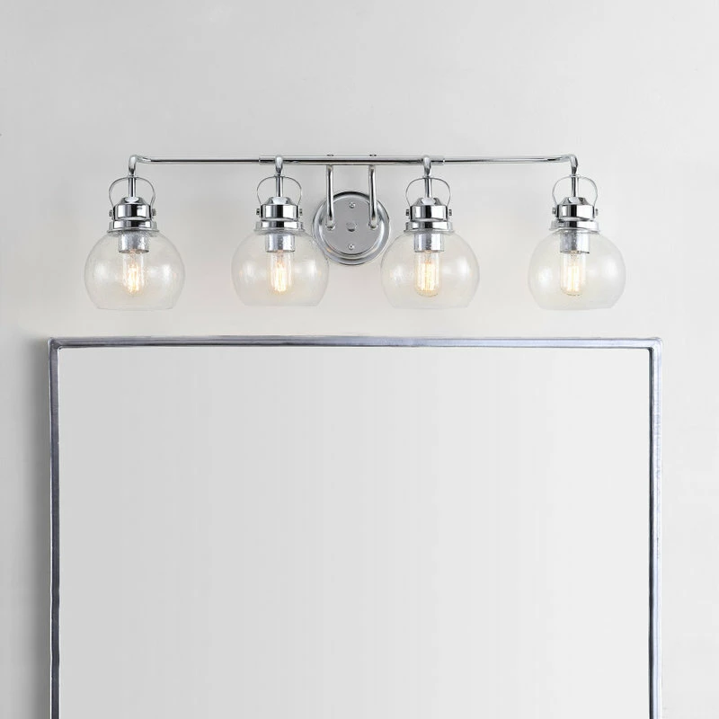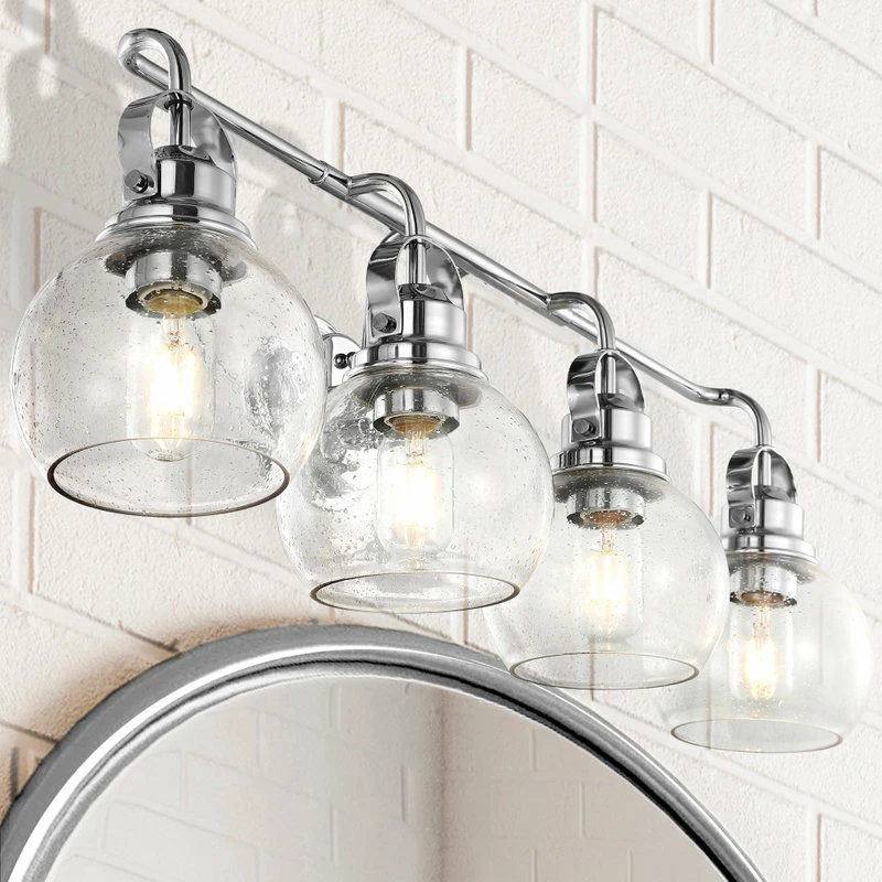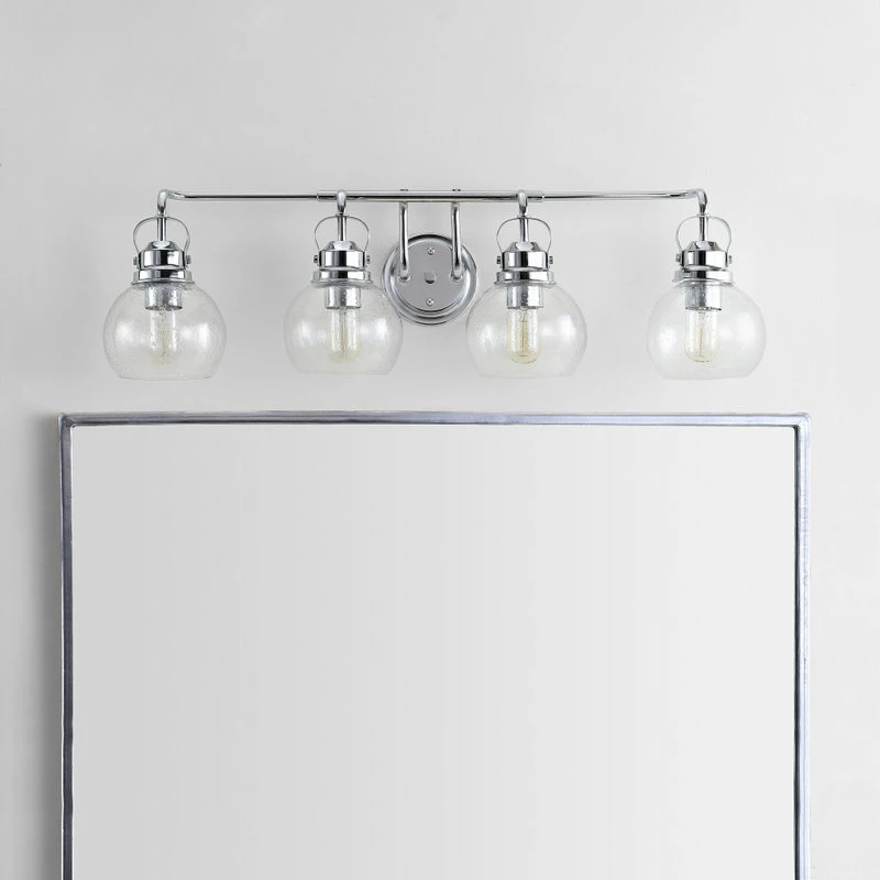Much like the lanterns hung on New England shores to signal sailors home on summer nights, this globe sconce design adds a welcoming touch to a bathroom or hallway space. In chrome and glass, the materials are built to withstand humidity and frequent use, while the design is equally functional with LED compatible wiring. In clear bubbled glass, you’ll get a strong glow for your vanity or bathroom space.