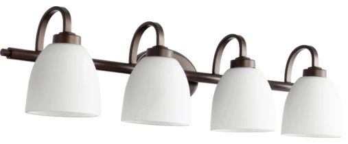 - Four Light Oiled Bronze Satin Opal Glass Vanity