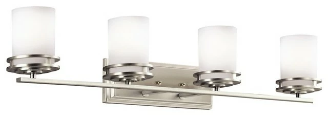 Named after renowned Dutch architect, Hendrik Berlage, the Hendrik Collection is a gorgeous family of contemporary fixtures that honor the man who was regarded by many as the in Father of Modern architecture in.. Much like Berlage himself, The Hendrik Collection is regarded as an intermediary between modern and traditional styles and is now suited for your bathroom. Classic lines are enhanced with a soft touch of current style cues to work in a number of aesthetic environments. The clean look provided by our Brushed Nickel finish is partnered with the Satin-etched cased opal glass for a fantastic pure and frosted color palate. The 4-light wall sconce uses a 100-watt (max.) bulb and measures 34″wide by 8″ high. This fixture may be installed with the glass up or down and is U.L. listed for damp location.