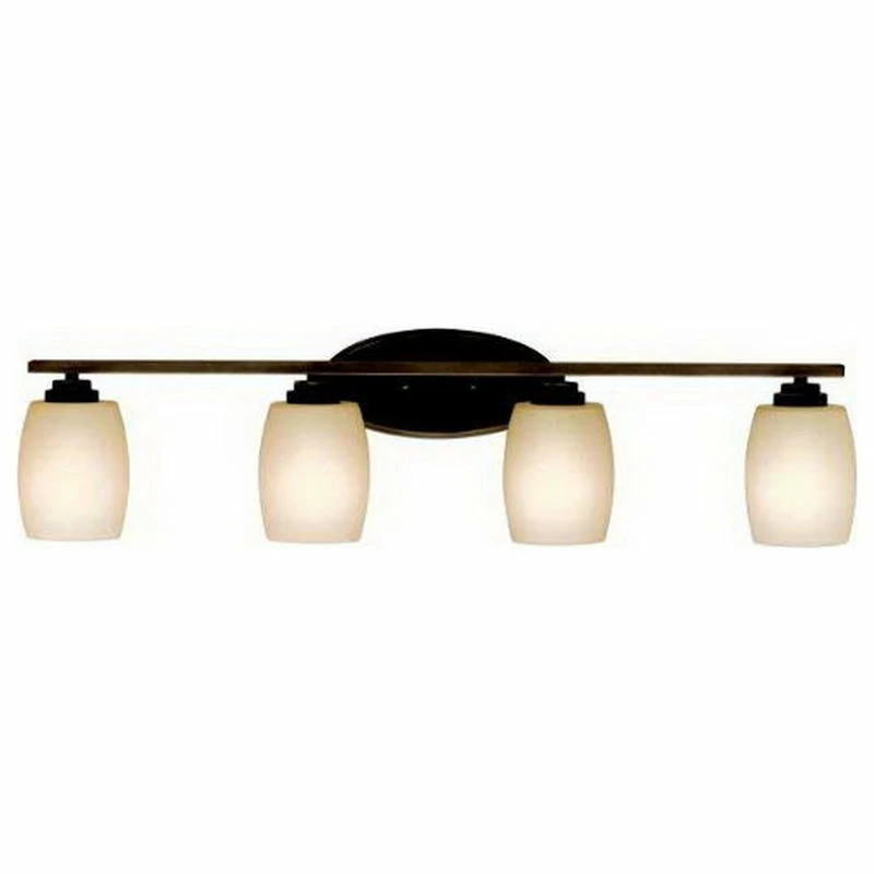 Named after famed furniture designer Eileen Gray, this 4 light bath fixture from the Eileen collection features a clean, straight linear construction. The warm elegance of our Olde Bronze® finish complements the etched glass perfectly to give the Eileen Collection the added ambiance that is ideal for today’s ever-evolving aesthetic. This light takes 4 x 100 Watt Bulbs **bulbs not included**UL approved. Hardwire installation