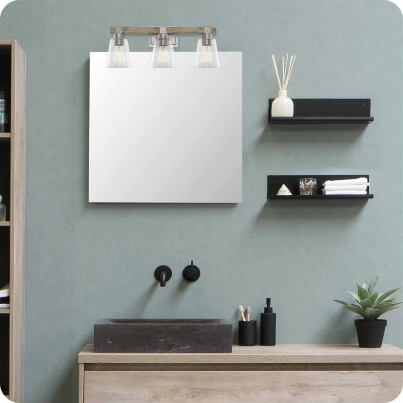 Kira Home’s Asher 23″ 3-light vanity light brings an attractive industrial farmhouse feel to your home. Featuring a stunning bleached oak wood style + galvanized steel finish and durable glass funnel shades, this wall fixture conveys both quality and character. Asher is constructed with quality materials and has been designed with attention to detail and suits styles such as rustic and country decor well. ETL listed for damp locations, mount above the bathroom mirror or vanity in your powder room with the shades pointed in either and up or down direction. Illuminate covered outdoor spaces like porches and patios. Need to set the mood? Asher works with standard dimmer switches when used with compatible bulbs and if you’re looking for a vintage look and feel, choose bulbs with an Edison style. Unlike our low priced competitors, Asher is ETL approved for your safety.
