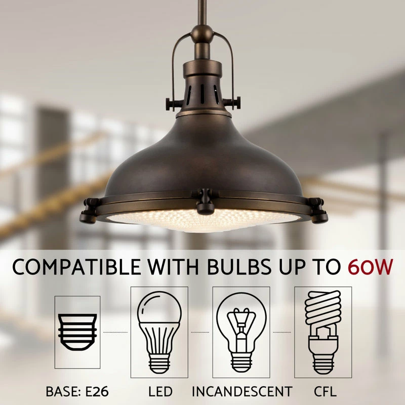 The Beacon 11″ vintage industial pendant light features a unique fresnel type glass lens, making it an easy conversation starter. It comes paired with an extraordinary hinge-locking design and smooth Oil-Rubbed Bronze finish. With its combined style of Industrial and Contemporary, the lamp is ideal for use in various different locations including kitchens, dining rooms, restaurants, bars and game rooms.