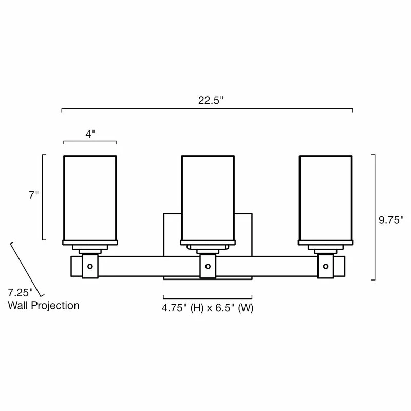 - DIMENSIONS: Bathroom Light: 9.75″ (H) x 22.5″ (L) x 7.25″ Projection from wall, Back plate: 6.5″ (L) x 4.75″ (W) x 0.75″ (H), Glass Shade: 7″ (H) x 4″ (D)