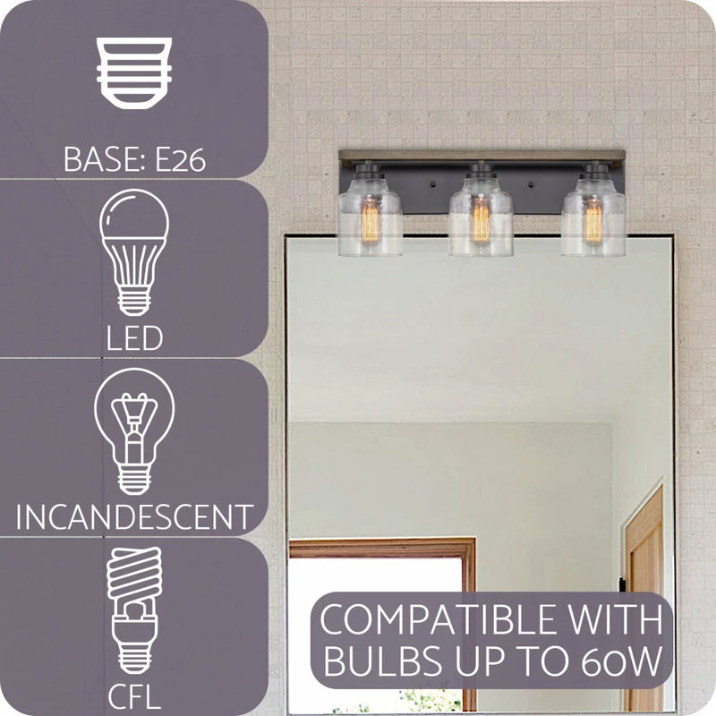 - ETL LISTED FOR YOUR SAFETY: ETL listed for damp locations. Uses (3) LED, CFL or up to 60W traditional incandescent medium base bulbs. Use with vintage style Edison bulbs to encompass that extra farmhouse vibe. Bulbs sold separately