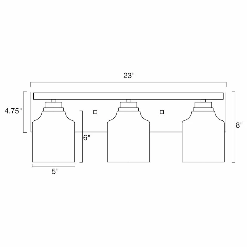 - DIMENSIONS: Bathroom Light: 8″ (H) x 23″ (L) x 6″ Projection from wall, Backplate: 23″ (L) x 4.75″ (H) x 0.75″ (W), Glass Shades: 6″ (H) x 5″ (D)