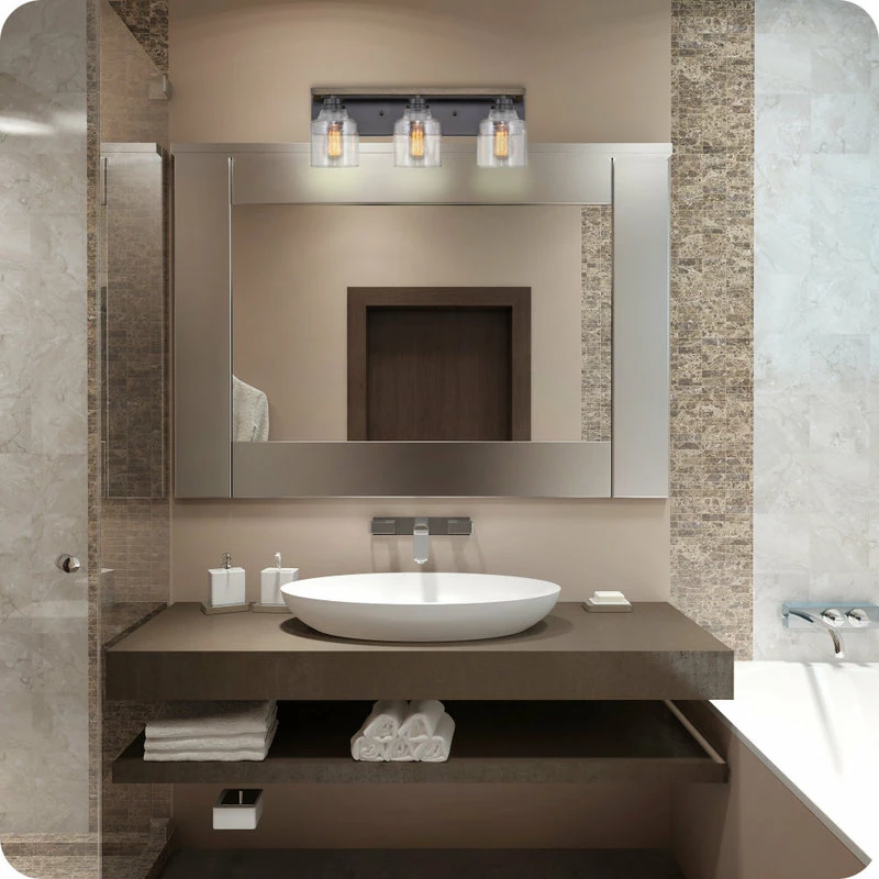 - BRIGHTEN YOUR SPACE: Mount this versatile, easy to install bathroom lighting fixture over mirrors or vanities, in a powder room or half bath, over a kitchen sink or bar area, dress up a hallways or in hospitality settings. Dimmer compatible