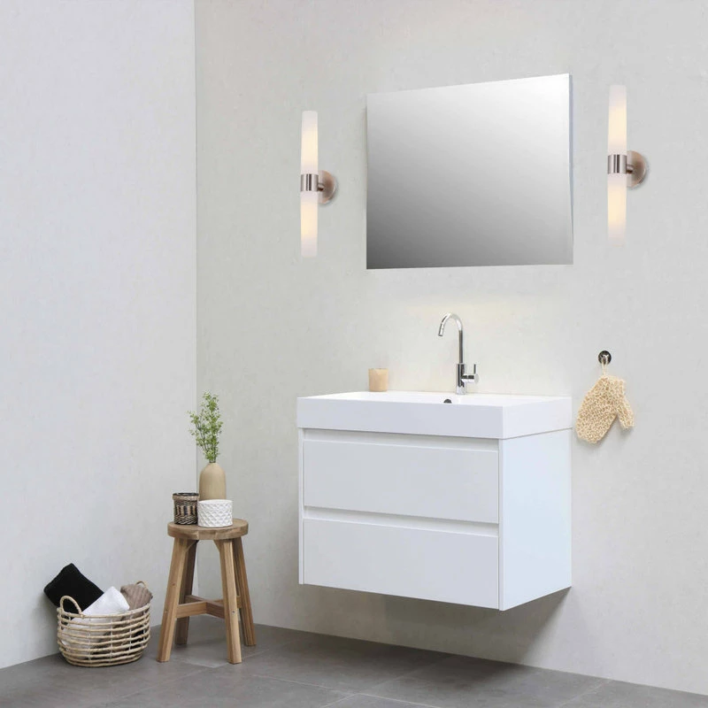 Kira Home’s Duo 21″ modern sconce features a unique up and down 2-light design sure to elevate any home. This double tube wall mount boasts quality frosted glass shades and a stunning brushed nickel finish, delivering maximum comfort and shine. Sleek and stylish, Duo fits beautifully into any home. Mount adjacent to mirrors in bathrooms, vanities or powder rooms for the perfect amount of illumination. This vertical wall mount sconce primarily suits indoors, but can be used in fully protected outdoor locations, unexposed to the elements. Simple and refined, Duo transitions from modern and minimalist styles to art deco and contemporary effortlessly. These dimmable brushed nickel wall sconces are the perfect interior lighting option. Unlike our competitors, Duo is UL approved for your safety.